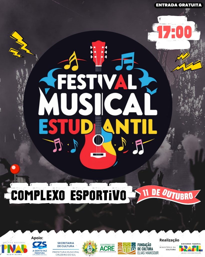 A segunda maior cidade do Acre recebe neste sábado, a partir das 17h, o Festival Musical Estudantil. O evento acontece no Complexo Esportivo de Cruzeiro do Sul e a entrada é gratuita.