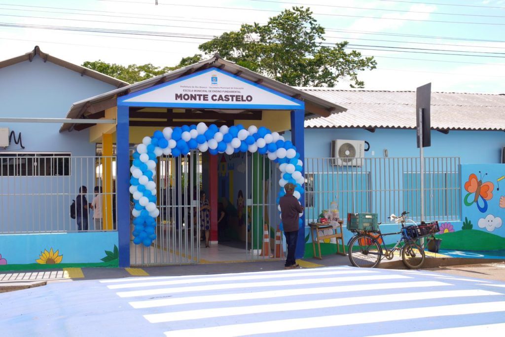 Em um momento simbólico, no dia que é celebrado o Dia dos Professores, foi realizada nesta quarta-feira, 15, a reinauguração da Escola Municipal de Ensino Fundamental Monte Castelo, localizada na Estrada Jarbas Passarinho, no bairro Placas. O prefeito de Rio Branco, Tião Bocalom e o secretário de Educação, Alysson Bestene, estiveram presentes na solenidade de entrega.