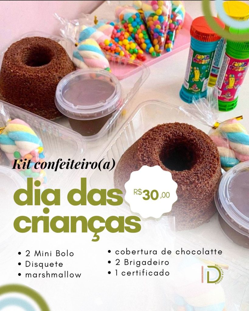 As empreendedoras Izaeli Moura e Maria Orleniza Braga também aproveitaram o Dia das Crianças para melhorar a renda. Donas da Delicatta Doceria há dois meses, as amigas criaram o “kit confeiteiro (a)” voltado para os pequenos, no valor de R$ 30 reais. O kit conta com mini bolo, cobertura, diversas opções de enfeite e, ainda, um certificado de confeiteiro mirim.