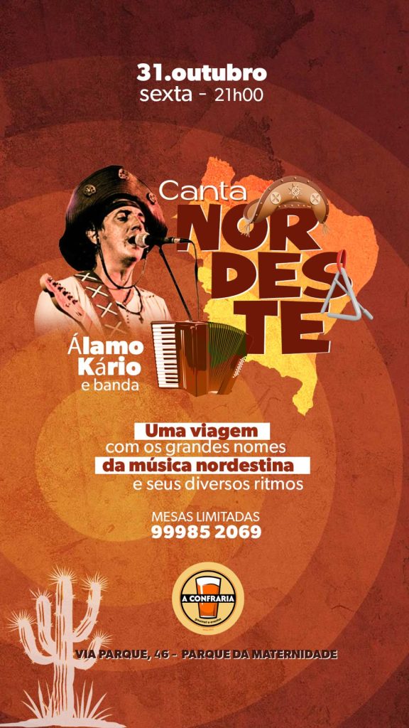 “É um especial que eu faço com músicas exclusivamente de artistas nordestinos. Começa com uma coisa mais da MPB e termina com os forrós, xotes, baiões e os xaxados da energia nordestina. A ideia é essa. Então, será um ambiente legal e tem muita gente que curte esse estilo. Acredito que é um tipo de evento que está em falta há algum tempo na nossa cidade”, afirma Álamo.