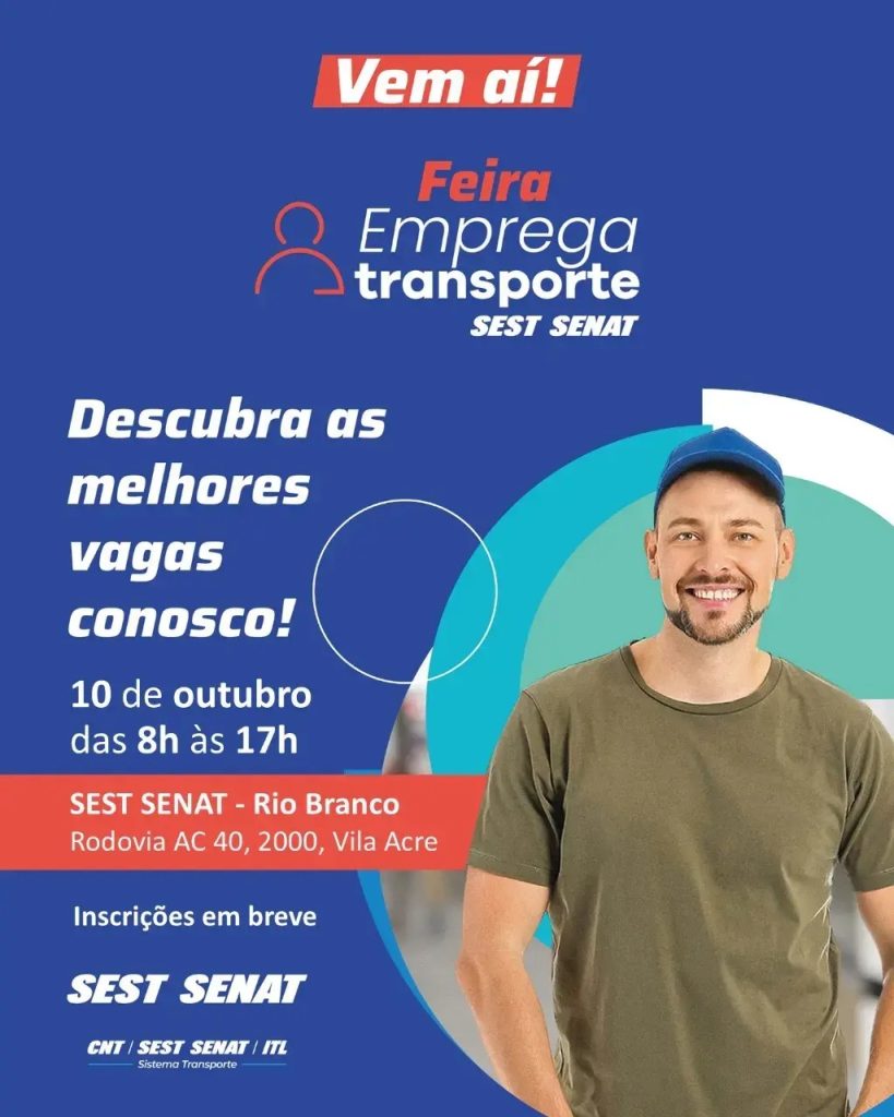 A Feira Emprega Transporte chega em Rio Branco com mais de 400 vagas sendo ofertadas nesta sexta-feira, 10. O evento promovido pelo Sest Senat segue até às 17h, no bairro Vila Acre.