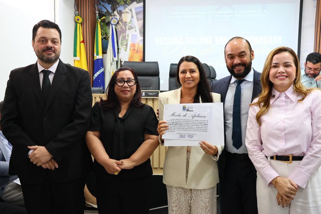 “Hoje foi um dia daqueles pra lá de especiais. Agradeço a Deus por cada passo da minha caminhada e pela linda homenagem que recebi hoje na Câmara de Vereadores de Rio Branco. Meu agradecimento especial ao vereador João Paulo e aos demais parlamentares pela lembrança e reconhecimento”, publicou.