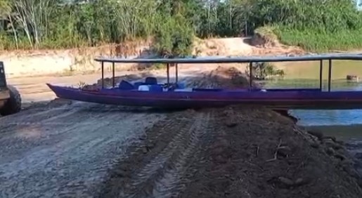 Um vídeo enviado a nossa reportagem mostra uma espécie de barreira montada por uma madeireira no Rio Iaco, na comunidade Santa Clara, para dar sequência a retirada de madeiras de um manejo na região.