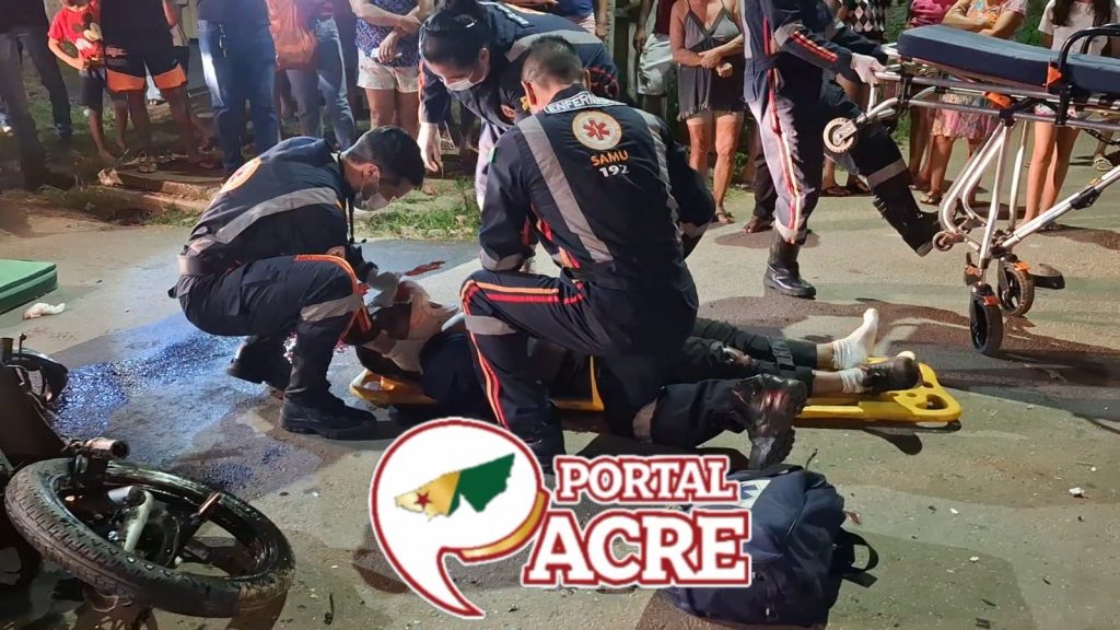 Um acidente de trânsito grave ocorreu na noite desta quarta-feira, 22, no cruzamento das ruas Laranja e Ingá, no bairro Mocinha Magalhães, em Rio Branco. Uma motocicleta e um ônibus da empresa Ricco colidiram, deixando Ray Silva da Costa, de 20 anos, gravemente ferido.