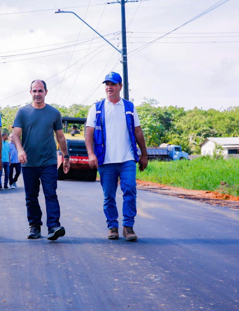 Entre as obras em destaque, está o asfaltamento do ramal da Gazin, localizado no bairro Miritizal, onde são aplicados cerca de 500 toneladas de asfalto ao longo de 1,7 quilômetro.