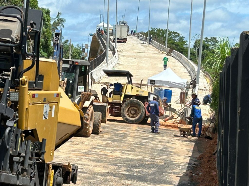 Mesmo com as fortes chuvas dos últimos dias, que têm exigido ajustes na programação, o Deracre mantém ritmo acelerado para concluir os últimos detalhes antes da inauguração, marcada para a próxima sexta-feira, 21. A expectativa é iniciar o asfaltamento das pistas de rolamento já nesta quinta-feira, 20, etapa considerada decisiva para o acabamento da ponte.
