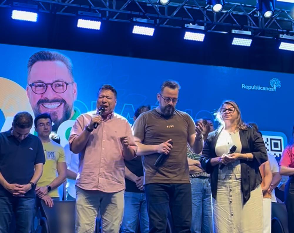 Pastor Agostinho orando durante filiação de Alan Rick ao Republicanos: Foto reprodução