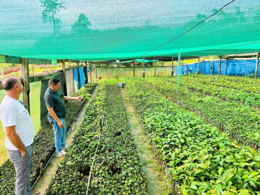 Nesta terça-feira (11), o prefeito Jerry Correia visitou o viveiro de mudas de café clonal mantido pelos produtores Ithamar Feitosa da Silva e Germa da Silva Alves, uma iniciativa familiar que já abriga cerca de 60 mil mudas prontas para plantio. O município possui dois grandes viveiros de mudas, projetos resultantes de anos de estudo, investimento técnico e parceria com instituições voltadas ao fortalecimento da agricultura local.