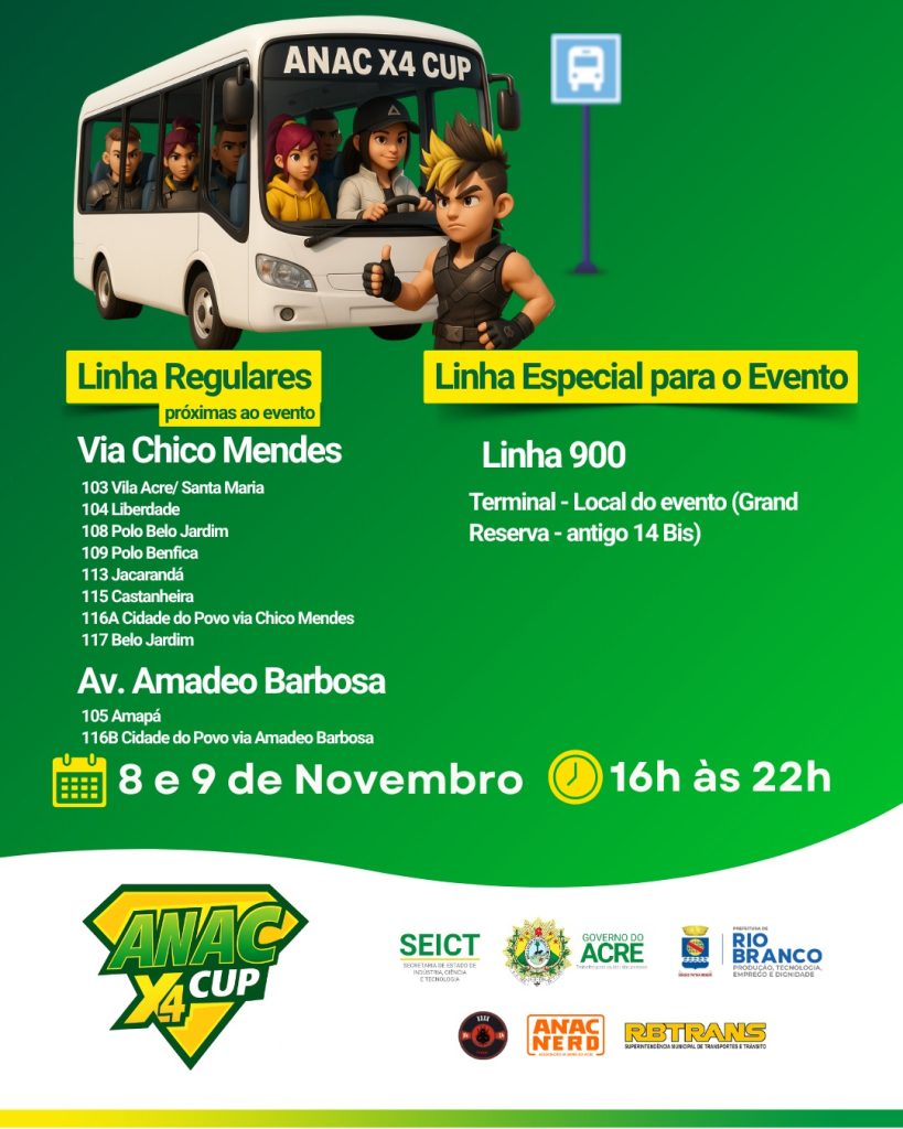 O público que participará da Comic Nerd 2025 – Especial Dragon Ball neste sábado, 8, e domingo, 9, contará com uma linha de ônibus exclusiva para se deslocar ao local do evento. A ação é resultado da parceria entre o governo do Acre, por meio da Secretaria do Estado de Indústria, Ciência e Tecnologia (Seict), e a Prefeitura de Rio Branco, pela Superintendência Municipal de Transportes e Trânsito (RBTrans).
