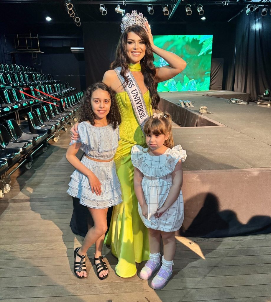 A Miss Acre se emociona ao falar das filhas, Alice e Giovana, de 5 e 11 anos, e revela que a maternidade foi essencial para a sua formação como mulher e pessoa. “Minhas filhas são os maiores atributos da minha vida. Sempre me emociono quando falo de maternidade porque é algo que mudou completamente a mulher que eu sou, e se eu não desisti de muitas coisas, é por causa delas, e elas fazem parte do meu propósito”, compartilhou.