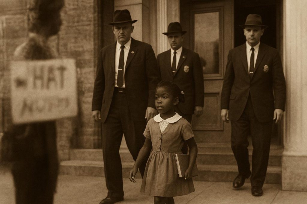 Nada disso é coincidência… É estrutura! E é por isso que a história de Ruby Bridges, uma criança negra precisando de agentes federais armados para entrar numa escola pública, não é um conto distante, é um espelho.