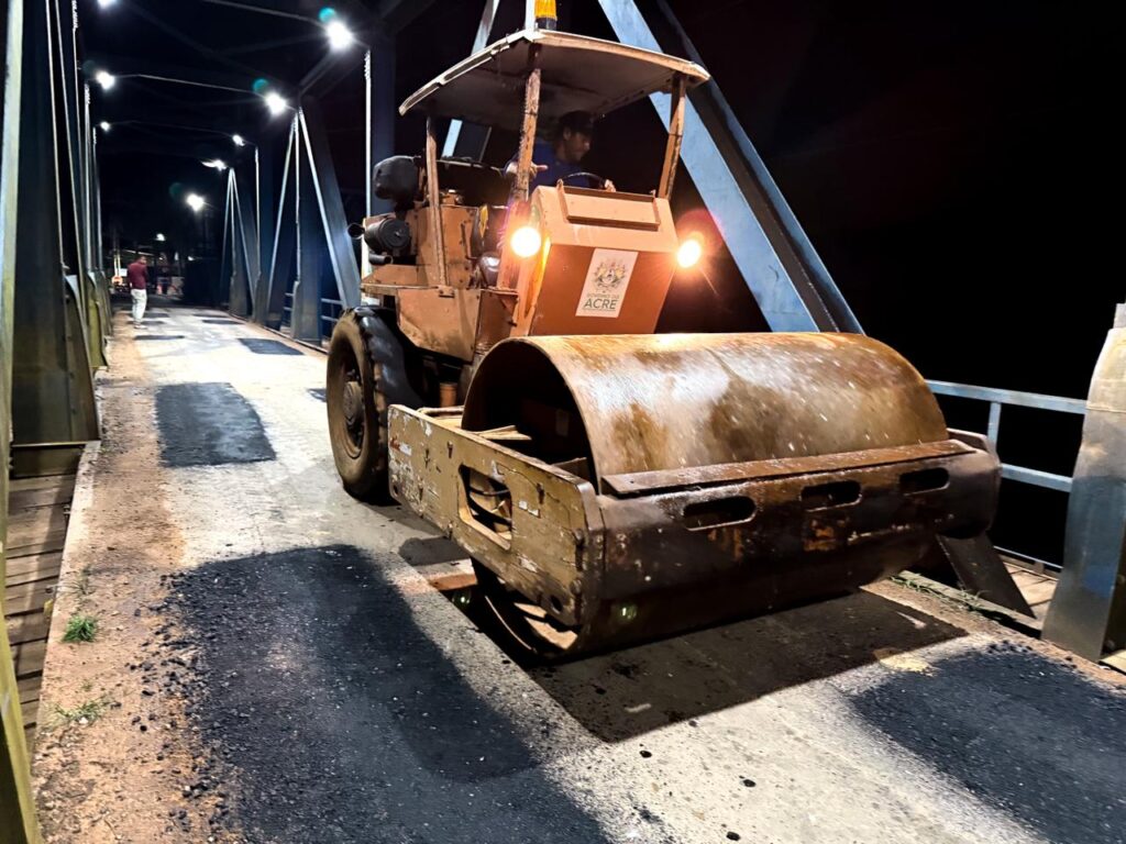 As equipes do Deracre realizaram operação tapa-buracos em toda a extensão da pista de rolamento, utilizando massa asfáltica para recompor o pavimento e eliminar irregularidades que comprometiam a circulação de veículos. O serviço garante mais estabilidade e segurança aos motoristas e pedestres que utilizam a ponte diariamente.