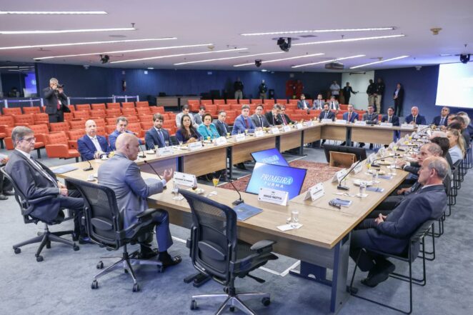 Também participou da reunião o presidente da Câmara dos Deputados, deputado Hugo Motta, que defendeu a prioridade na tramitação do Marco do Crime Organizado (Projeto de Lei nº 5.582/2025) como instrumento de modernização das leis e de fortalecimento da segurança pública.