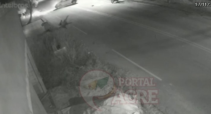 Uma câmera de segurança flagrou o momento exato em que uma motocicleta Honda Bros vermelha se chocou contra um veículo Volkswagen CrossFox na noite desta segunda-feira, 17, na Rua Cunha Vasconcelos, área central de Sena Madureira. A batida foi forte e deixou gravemente ferido o motociclista Paulo Ricardo, de 19 anos.