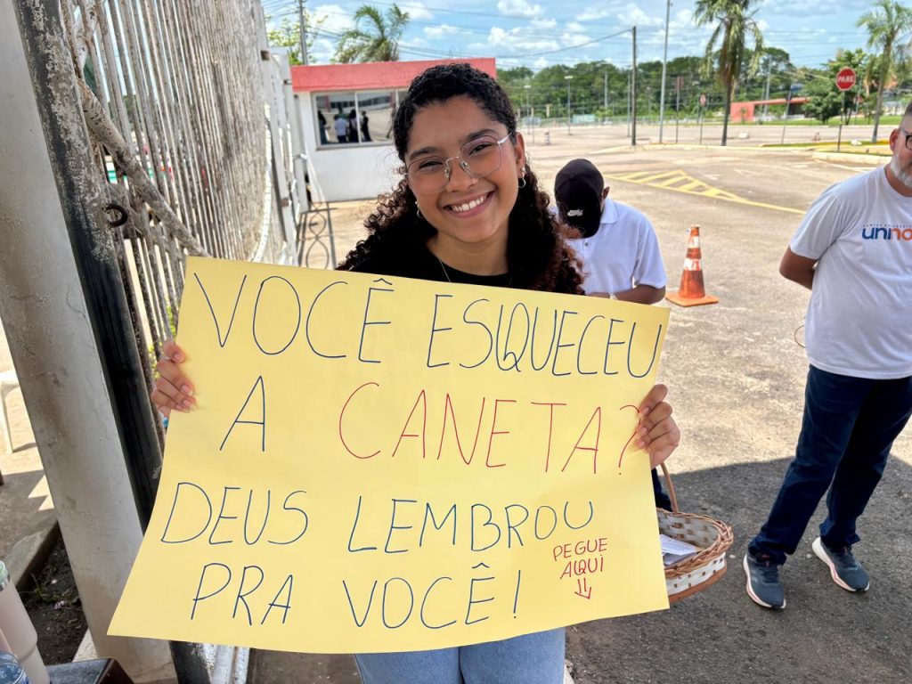 Joel Costa, um dos integrantes da rede, compartilha que a iniciativa já acontece há alguns anos, nos dois dias de prova. “Sempre tentamos variar, mas quase sempre ficamos aqui na Uninorte, e é uma ideia simples, onde oferecemos água, caneta, oramos por aqueles que esão ansiosos. E muitas pessoas querem a oração. É um incentivo para um dia tão tenso, principalmente para os jovens, mas para os adultos também”, explica.