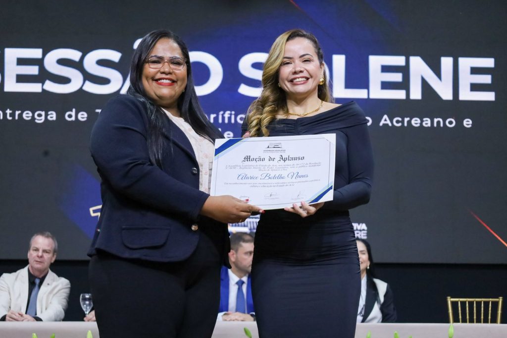 A xapuriense Alarice Botelho recebeu nesta quinta-feira, 18, na Assembleia Legislativa do Acre (Aleac) uma Moção de Aplausos em reconhecimento ao trabalho árduo e de grande relevância na área de política, cultura e educação no estado acreano. A homenagem foi solicitada pela deputada Michelle Melo (PDT).