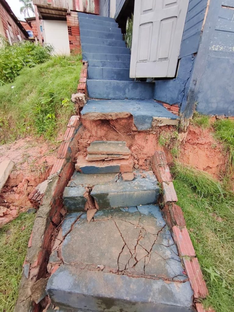 Na Baixa, na região do Morro dos Quibes, uma escada que cedeu e passou a ameaçar residências próximas. Alguns imóveis estão sob risco na área, levando à realização de vistorias e à programação de avaliação técnica com engenheiro. Próximo ao Mercantil São Paulo, que fica no bairro da Floresta um muro que cedeu também recebeu intervenção da Prefeitura com retirada de escombros.