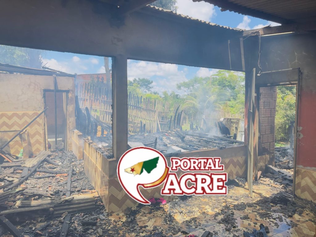 Uma residência de madeira e alvenaria foi totalmente destruída por um incêndio no início da tarde desta quarta-feira, 14, na Rua Pirapitinga, na Invasão do Panorama, bairro São Francisco, na parte alta de Rio Branco.