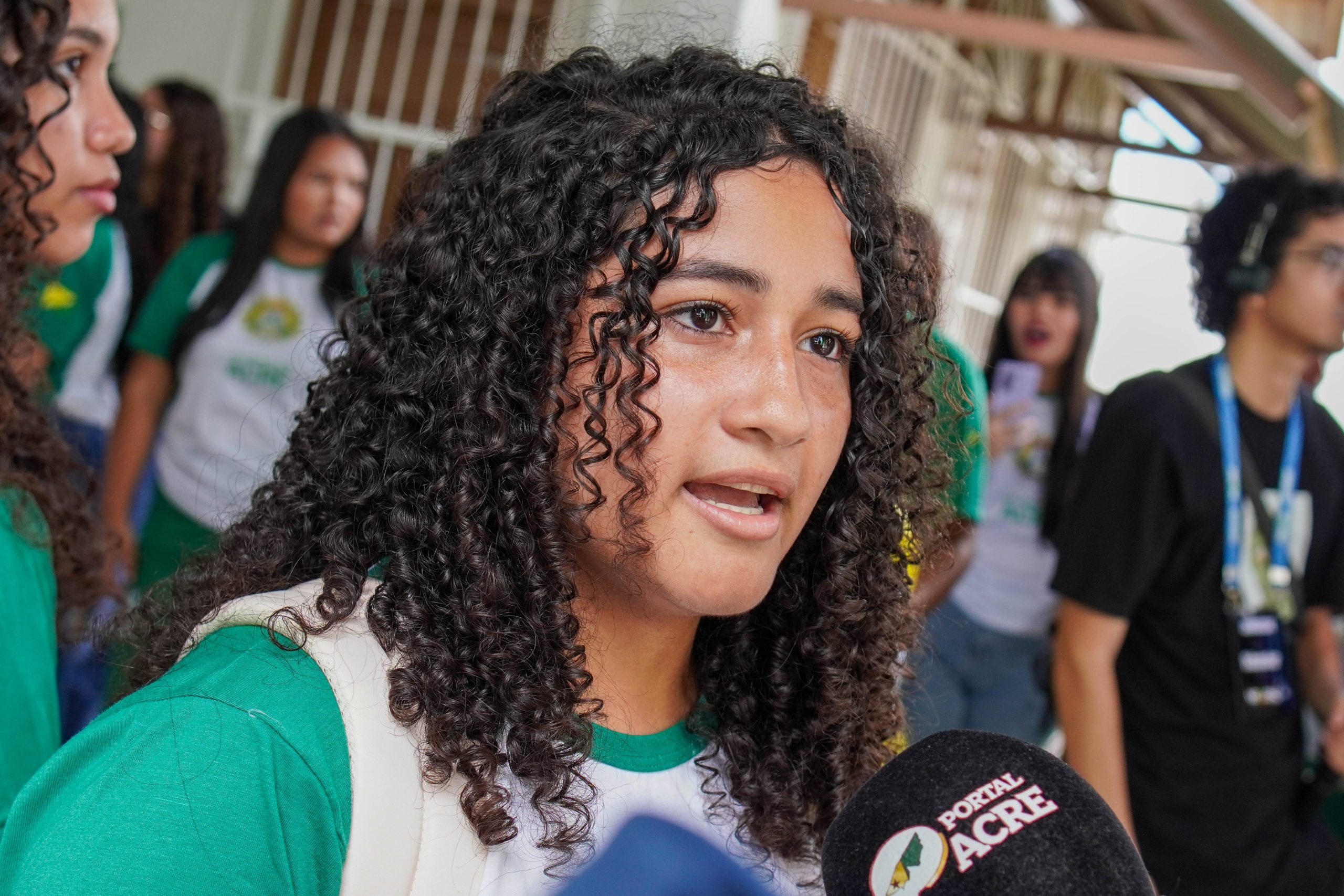Representando os estudantes, a aluna Layane Santos, do 3º ano do ensino médio integral, falou sobre a expectativa para o último ano escolar.