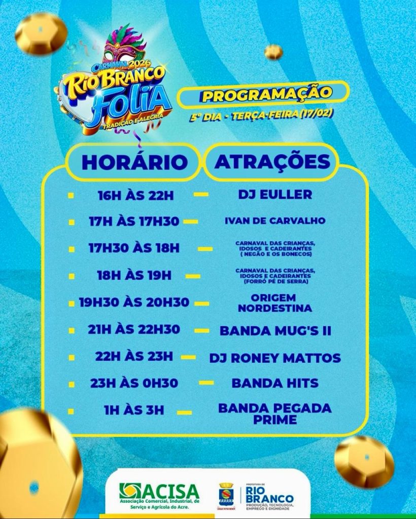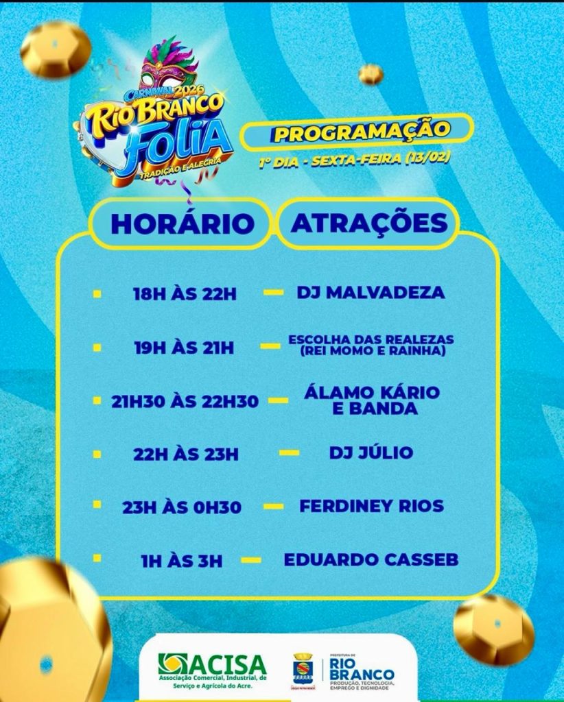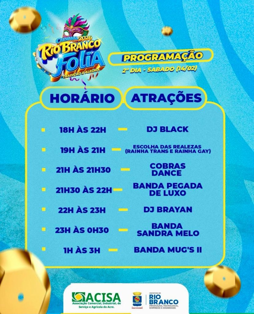 O Carnaval Folia 2026, em Rio Branco, já está com programação definida para os cinco dias, que acontecem de 13 a 17 de fevereiro. As atividades serão voltadas ao público em geral, além dos concursos de realezas e desfiles de blocos. Para o prefeito, Tião Bocalom, a expectativa é que a festa seja tranquila.