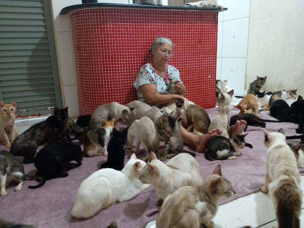 A renda de Francisca vem de trabalhos e diárias que realiza com faxinas. Atualmente, ela acolhe 146 gatos e cinco cachorros. Sem emprego fixo, a protetora realizava quatro diárias como faxineira, mas perdeu duas recentemente após os contratantes se mudarem de estado.
