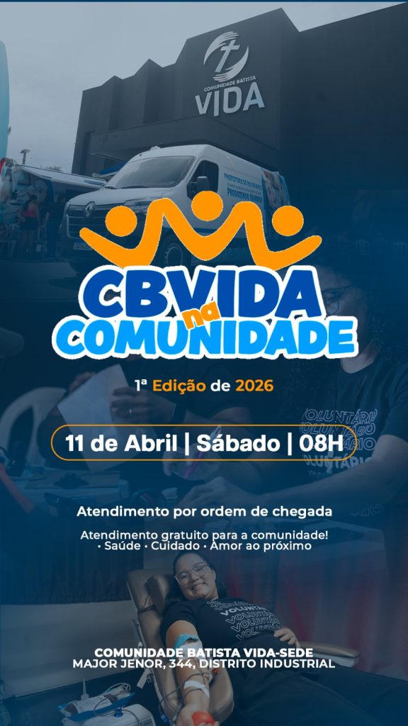 A Comunidade cristã Batista Vida (CBVida), realiza, neste sábado, 11, a partir das 8h, a ação “CBVida na Comunidade”, com diversos serviços de saúde, cuidado e convivência gratuitos para toda a população.