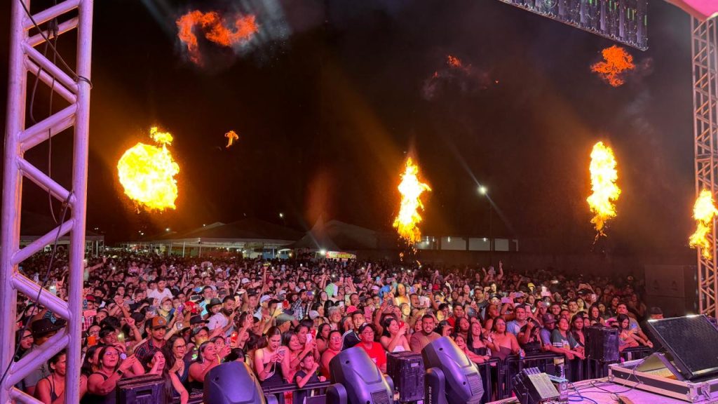 O cantor Evoney Fernandes foi uma das atrações da festa de 34 anos de Acrelândia, realizada na noite desta segunda-feira, 27, reunindo público e movimentando a programação de aniversário do município.