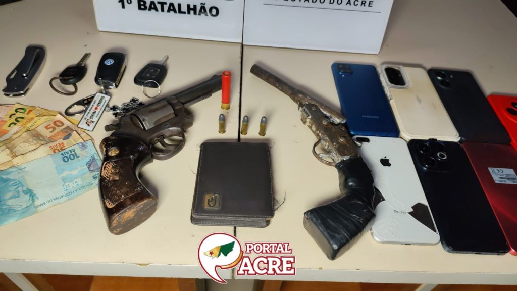 Na abordagem, os militares encontraram duas armas de fogo e recuperaram os objetos levados no assalto, incluindo os aparelhos celulares e o valor em dinheiro. Além do Renault Kwid, um VW Voyage também foi identificado como tendo sido utilizado na ação.