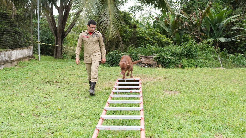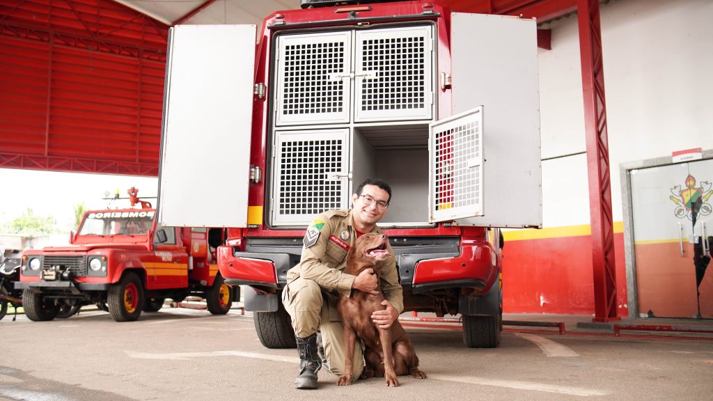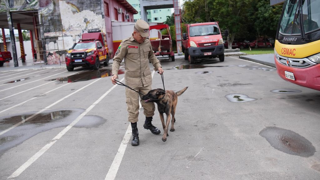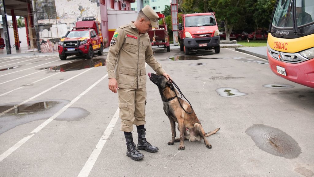 No Corpo de Bombeiros do Acre, uma das ferramentas de busca e salvamento envolve homem e bicho. Além das habilidades conseguidas ao longo de anos de contínuo treinamento, os bombeiros acreanos têm no faro aguçado de cães um apoio importante em diversas ocorrências de localização de pessoas.