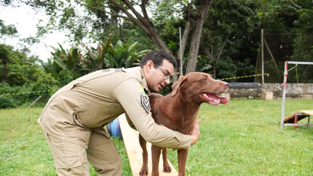 “Para eles, é sempre uma brincadeira, toda missão é uma grande brincadeira preparada para eles. A gente aproveita o comportamento natural da e transforma em técnica”, explica o sargento Juliano Elias, treinador e subcomandante do canil.