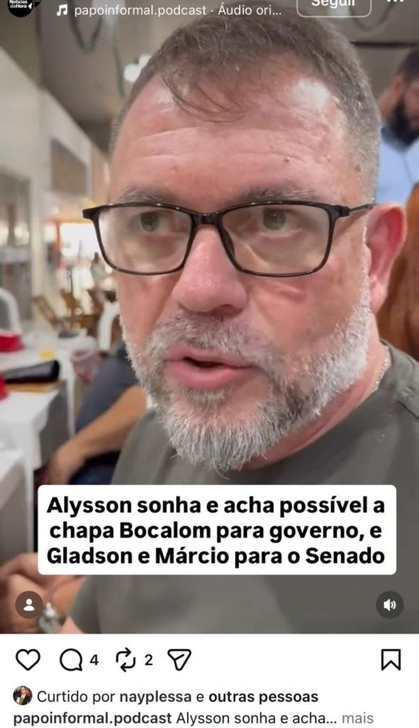 Causou estranheza entre os secretários e detentores de cargos do alto escalão do governo uma curtida da secretária de Comunicação Nayara Lessa em uma publicação do site Notícias da Hora com o seguinte título: “Alysson sonha e acha possível a chapa Bocalom para governo, e Gladson e Márcio para o Senado”. Sem juízo de valor, mas, realmente, foi estranho, afinal, sua “chefa”, a governadora Mailza é candidata ao Palácio Rio Branco.