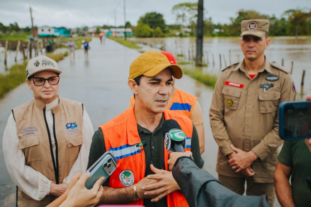 O prefeito Zequinha Lima esteve no bairro do Miritizal acompanhando de perto a situação das áreas atingidas pela cheia do Rio Juruá, acompanhado do comandante do Corpo de Bombeiros, major Josadac Cavalcante, do coordenador da Defesa Civil, Júnior Damasceno, da secretária municipal de Assistência Social, Milca Santos, do vereador da localidade José Roberto, além de equipes técnicas do município.
