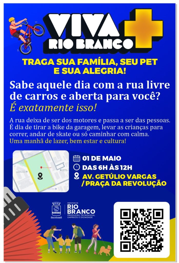 A prefeitura de Rio Branco realizará na sexta-feira, 1º de maio, o Projeto “Viva + Rio Branco”, a iniciativa promete transformar temporariamente a região central da cidade em um grande espaço de lazer, convivência e bem-estar.