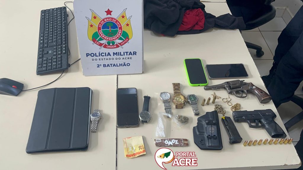 Douglas da Silva Chagas, de 21 anos, Tiago Andrade de Lima, de 22, e um homem de 26 anos foram presos após um assalto com refém registrado na manhã desta terça-feira (21), no Ramal do Zé Carlos, localizado na região do bairro Vila Acre, no Segundo Distrito de Rio Branco.