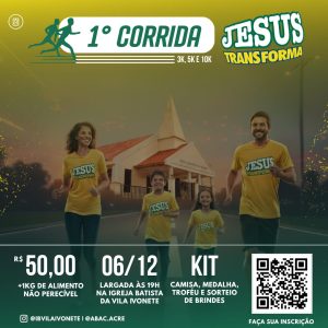 A Igreja Batista da Vila Ivonete está coordenando a primeira corrida Jesus Transforma, que acontece no dia 6 de dezembro, com largada prevista às 19h