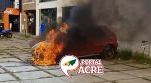 Um veículo ficou parcialmente destruído após um incêndio na manhã desta terça-feira, 18, na Rua Coronel José Galdino, em frente à Diretoria de Vigilância em